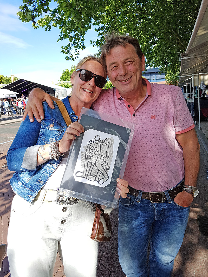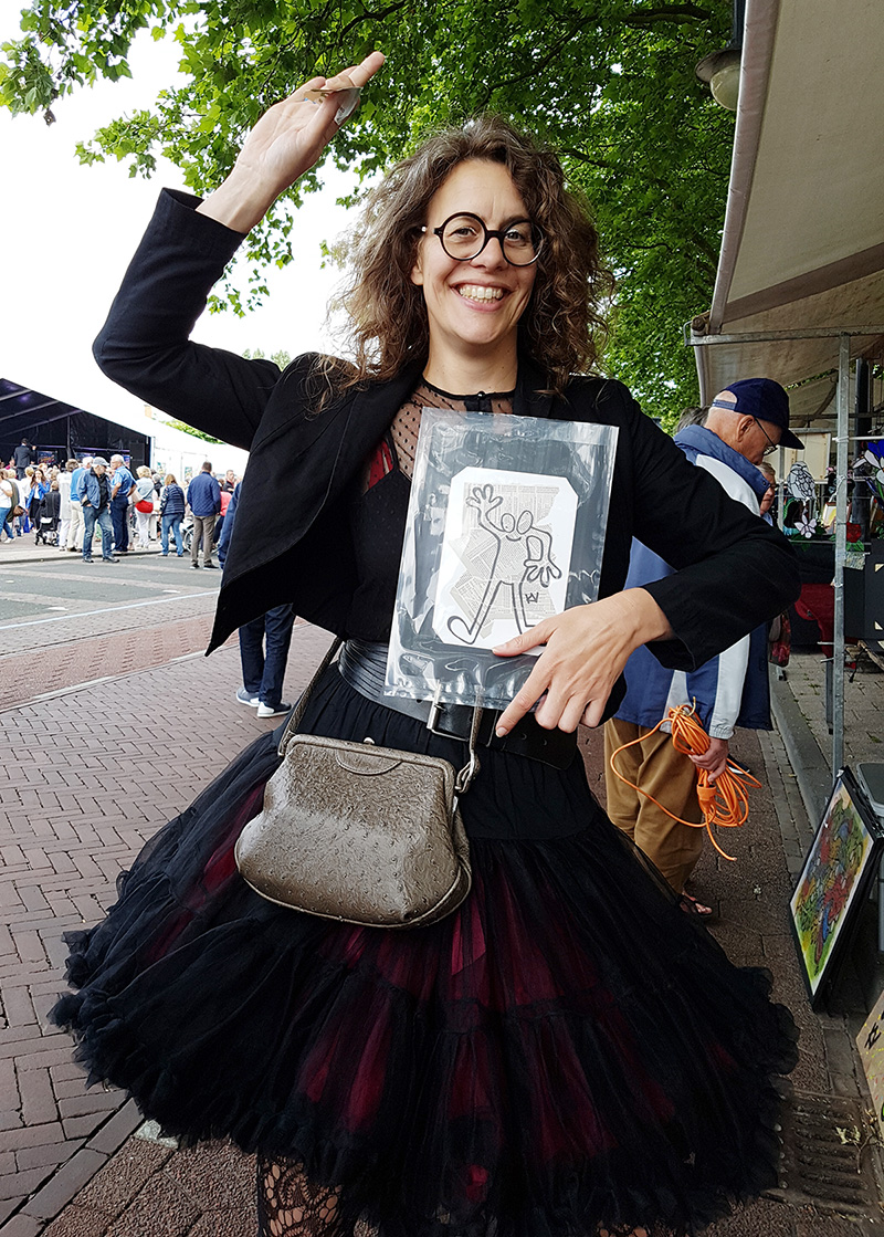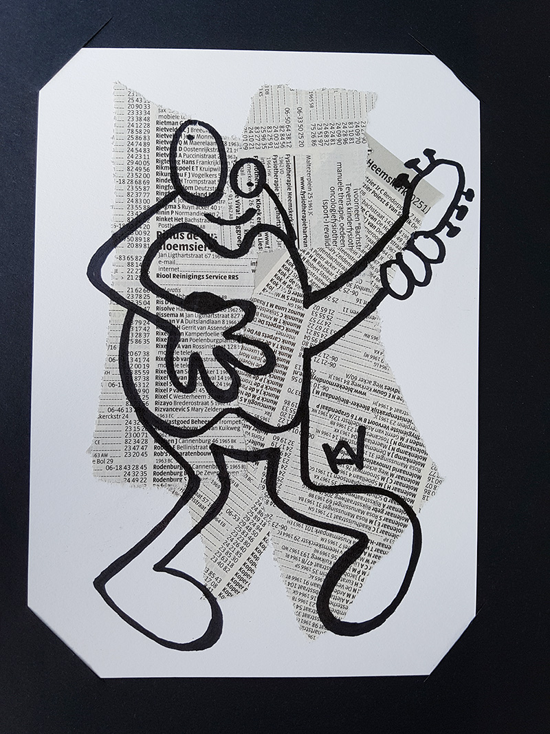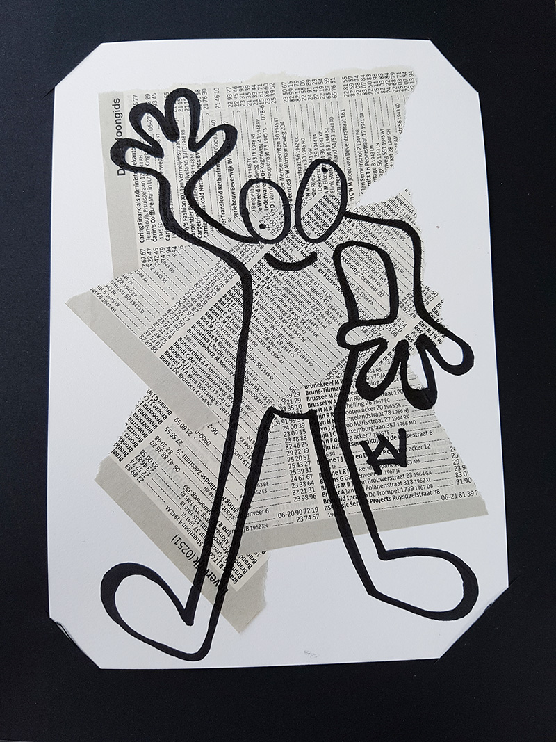 Op de kunstmarkt van Heemskerk in 2017 maakte ik portretten van mensen. De tekeningen zijn getekend op Heemskerkse/Beverwijkse pagina’s uit het allerlaatst ontvangen telefoonboek. In Karenstijl, genderneutraal en zonder kleding. Alle portretten zijn aan de achterkant voorzien van een ‘Karenstempel’ en genummerd.